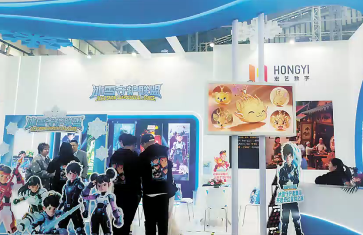 哈尔滨神洲宏艺影视的展台前,通过AR技术,屏幕里的“冰雪守护联盟”卡通形象从景区背景中跳出来,挥手时还会撒下虚拟雪花。“这是哈尔滨原创的冰雪IP,60集动画里藏着太阳岛、雪博会的剧情彩蛋。”总经理贾存说。